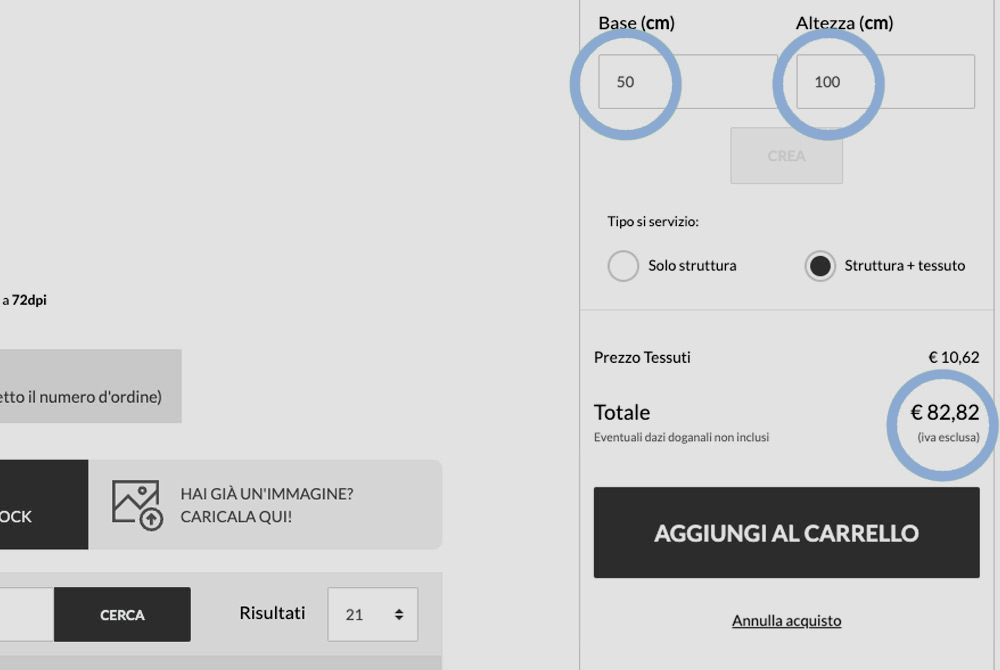 Zero tempo di attesa per ottenere il preventivo!Puoi inserire tutte le misure che vuoi ed ottenere il prezzo in tempo reale!